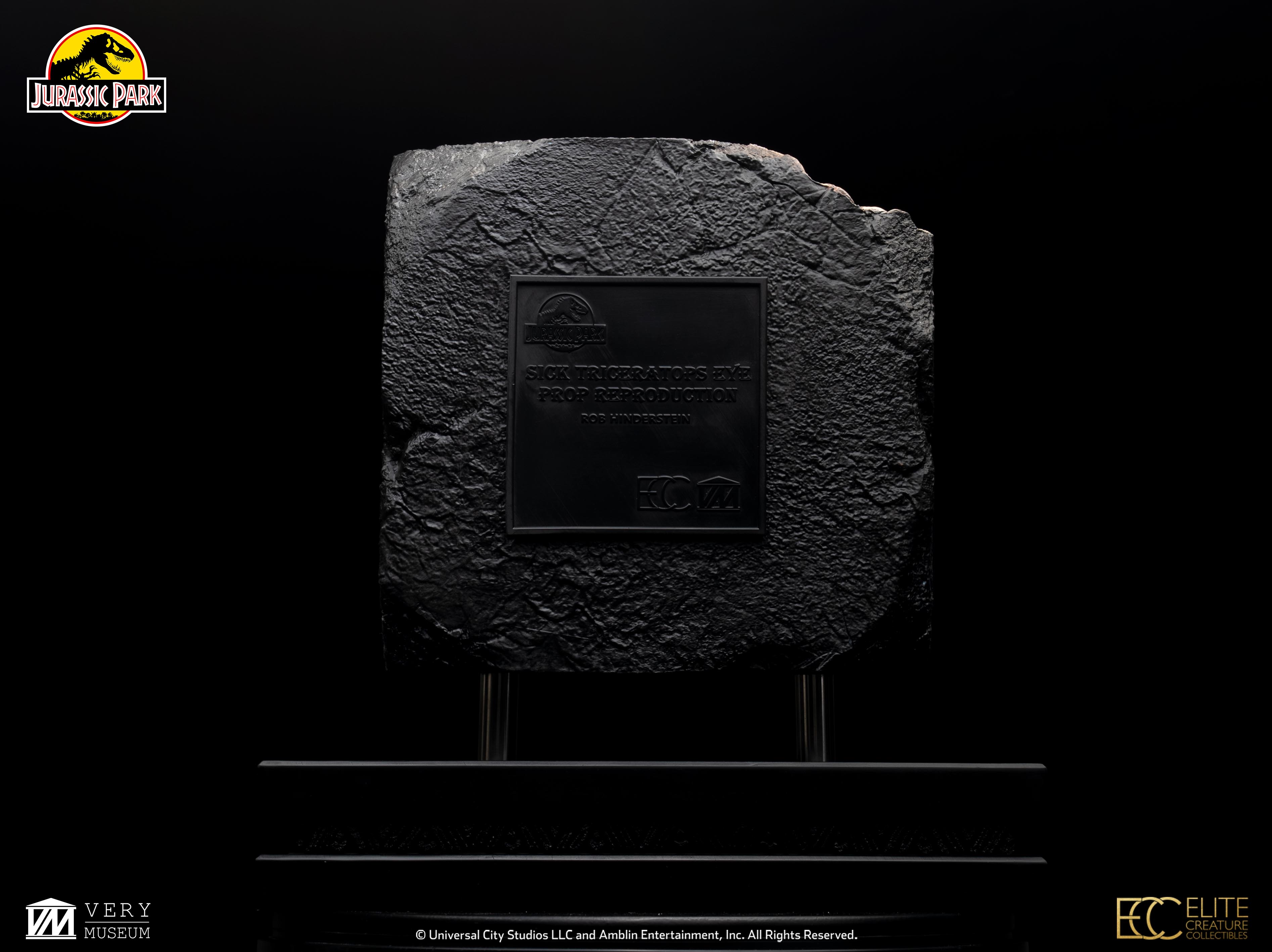 Elite Creature Collectibles is proud to present the Triceratops Eye Prop Reproduction, the latest movie prop reproduction from the Jurassic Park franchise. Using original paint masters, step-by-step guidance from Stan Winston Studio key artist Rob Hinderstein, and hands-on access to the original eyeball and core prop, ECC key artist Oskar Ankarudd and ILM artist Bitan faithfully recreated every intricate detail. Leveraging full-color 3D-printing technology, this piece delivers a stunning and highly accurate reproduction of the original screen-used Triceratops eyes.